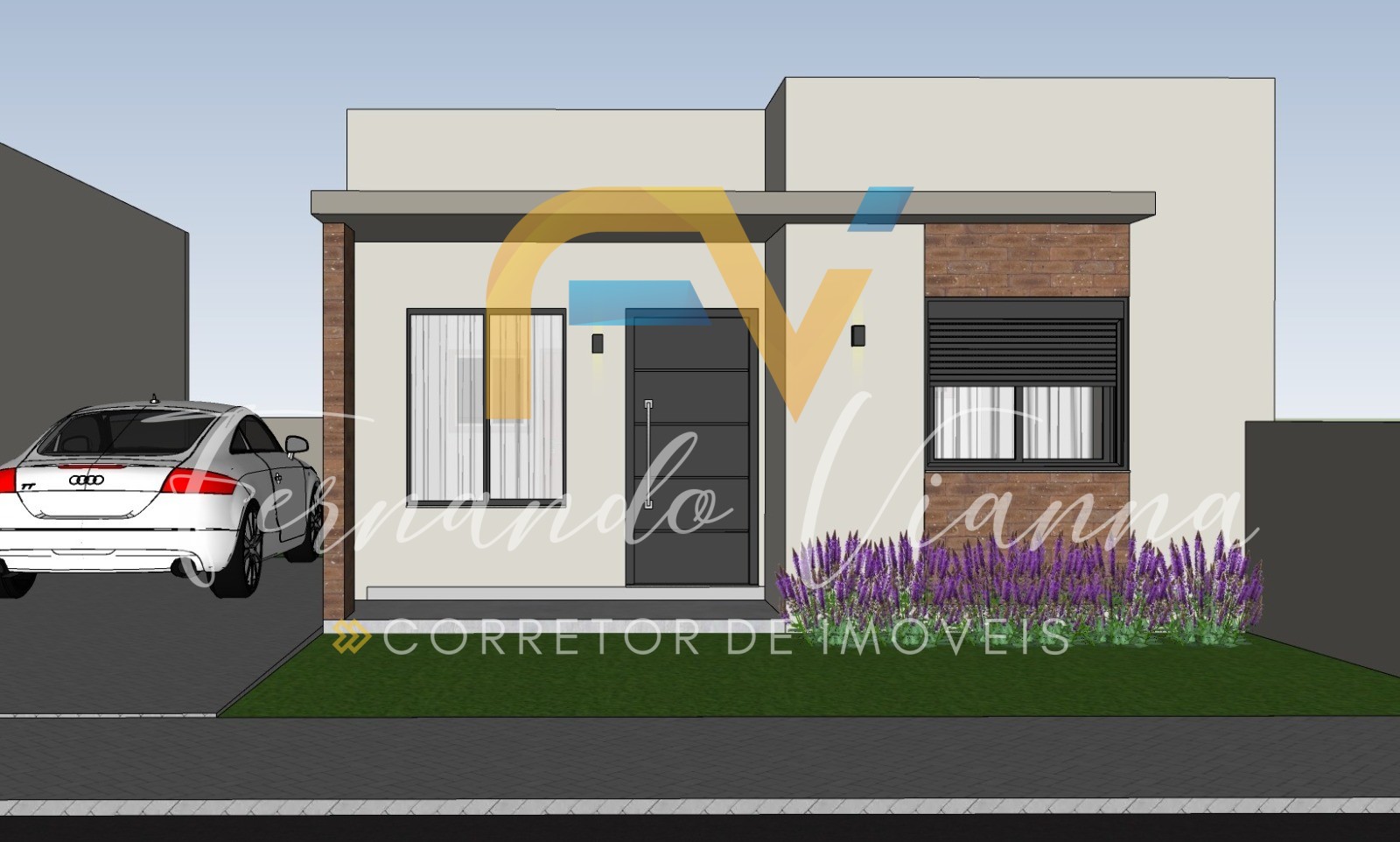 Distribuição: 2 dormitórios, sala de estar/jantar integradas com a cozinha, área de serviço, banheiro social e vaga para veículo.