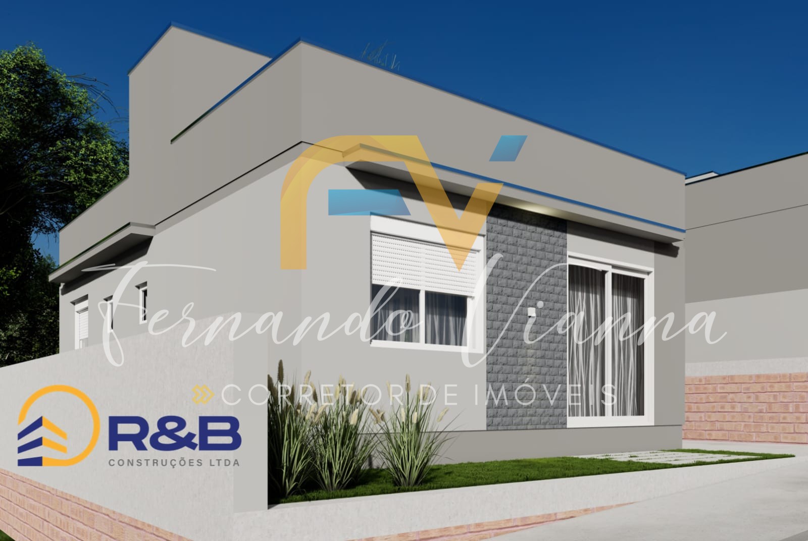 Casa nova, em fase de construção, localizada na rua das Petúnias, Loteamento Bosque da Figueira, Pareci Novo, RS.