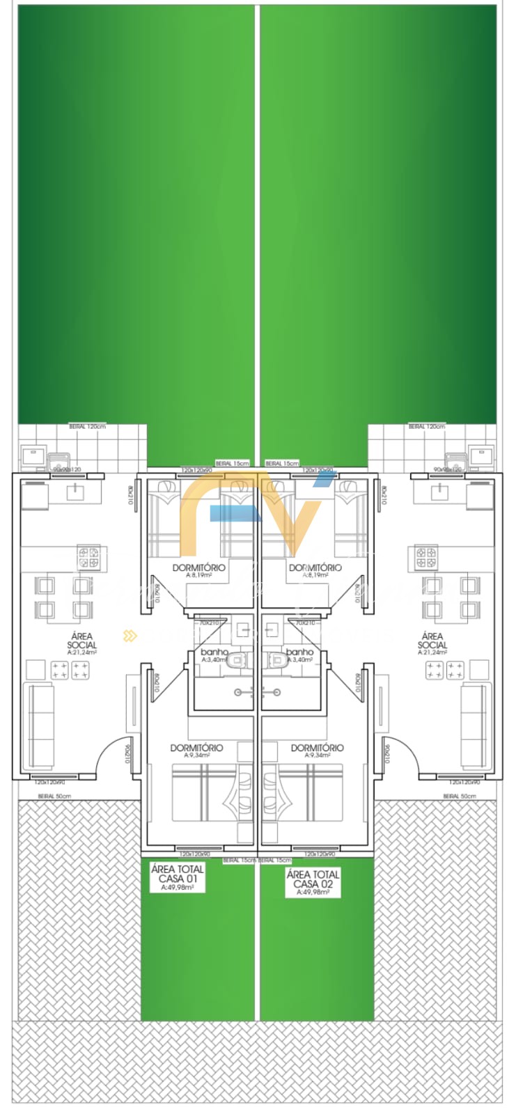 * 02 dormitórios cada casa;