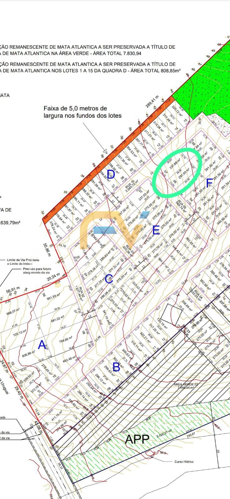 Lote 07 da quadra F, fase 1 (esquina) medindo 12,75m x 26,50m – 377,88m².